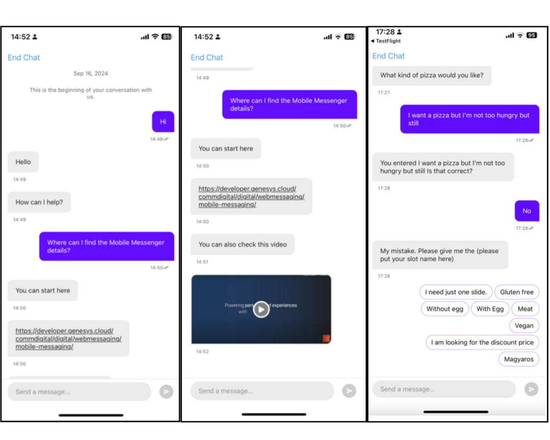 Genesys Cloud 移动消息传递使访问者能够进入您的应用程序,与代理交谈,然后稍后返回继续对话。Genesys Cloud 保留对话历史记录,在对话开始时为用户检索该历史记录。此功能使用户能够在正在进行的对话中浏览过去的消息。