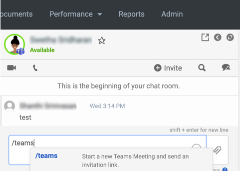 - 在任何聊天中,输入 /teams。