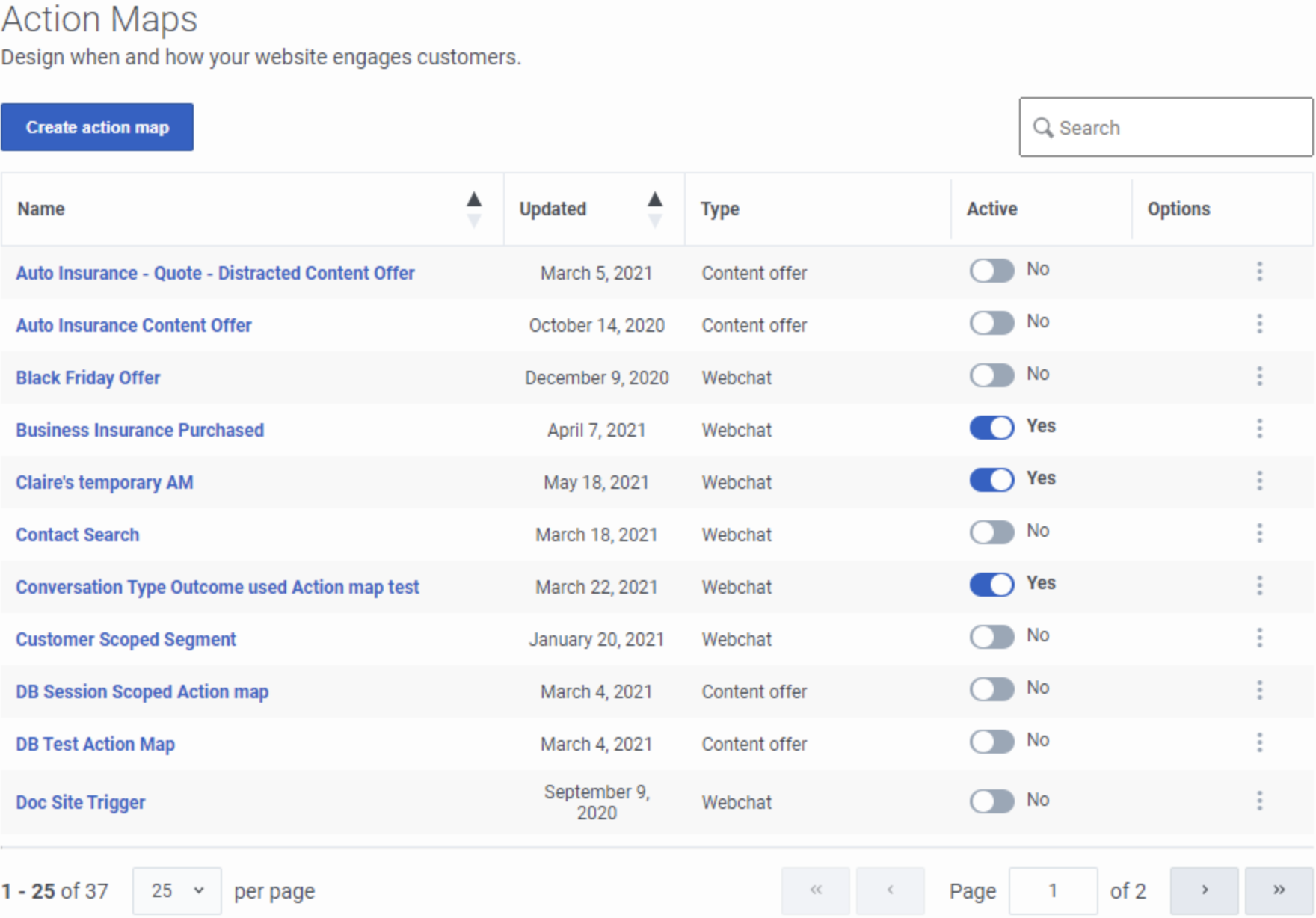 当你创建行动图,它处于活动状态并准备立即在您的网站上触发。 要防止触发动作图,请将切换开关滑动到不。 当您创造或者编辑行动图。